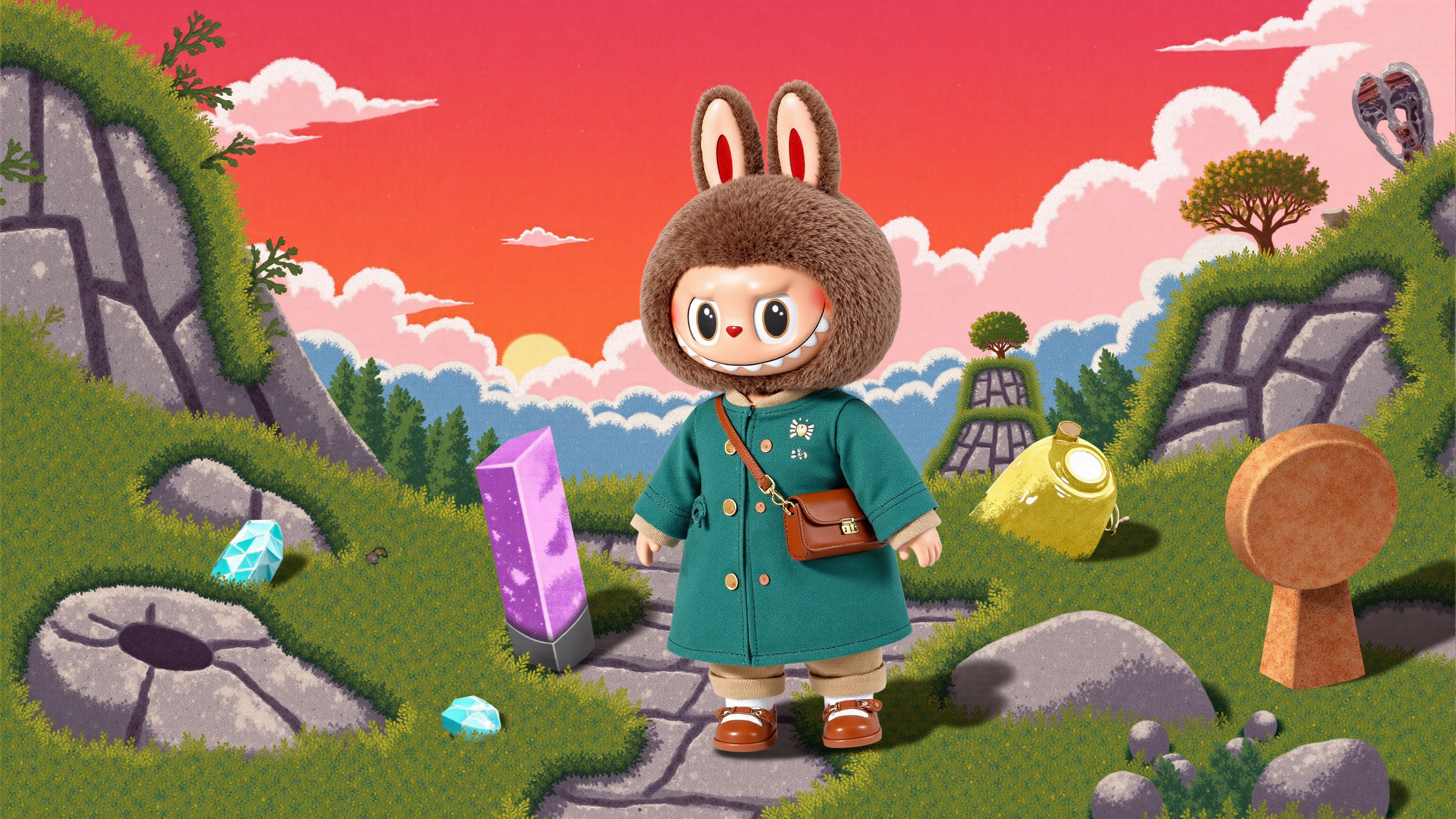 虽然具体的官方发布可能会有所不同,但 Labubu 桌面壁纸设计的可能性是巨大的,通常从众多的 Pop Mart 盲盒系列和 Kasing Lung 的艺术作品中汲取灵感: